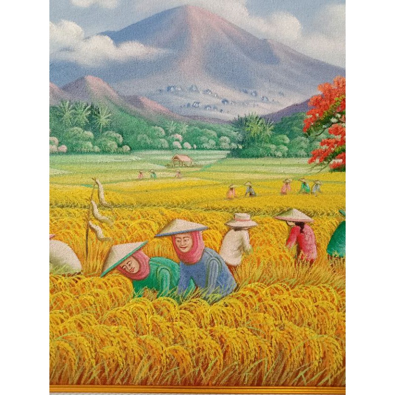 Lukisan panen padi di sawah pemandangan alam menguning, rp399.900 ;